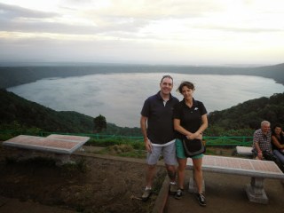 After lunch we went up to the top of an active volcano (the photos can be found at http://www.melisajohnson.com/christmas-2013.html) Then it was down to a craft market- it was one of those where you can’t even stop to look at something without being harassed, which was a shame because they had quite a bit of stuff. So, we thought we would get a beer and just relax. We had $20 USD- It was impossible to find someone who could provide us with any change! So we gave up and walked back to our bus and found Eric. He got a restaurant to open up and they sold us 2 beers ($2 total) and provided us with change. We loaded back up in the bus and headed to a dormant volcano that is now w a beautiful lake!