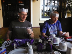 We were up early and down for breakfast at 7- Richard and I were first and so we put the crackers and chocolate oranges on the table. Mom and dad brought the stockings down and we were all set! Just our immediate family was down there… we opened gifts after reading our jokes and checking out what toys everyone got in their crackers.
