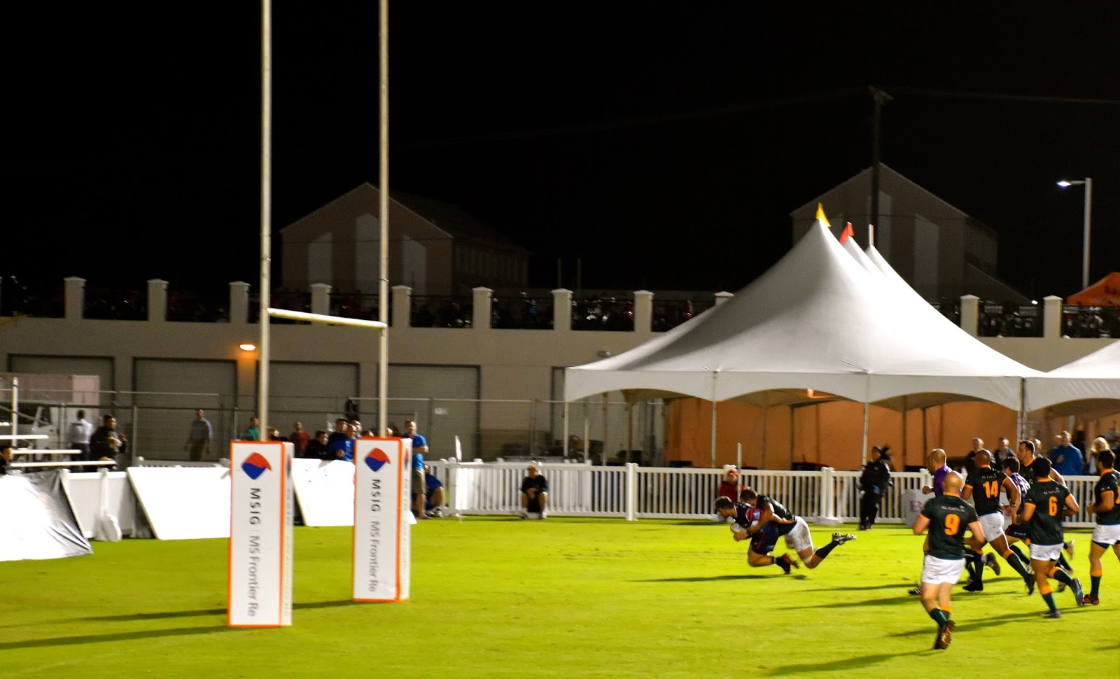 Up first were the USA who played against South Africa. The first half was really exciting with the USA soaking up a lot of South African pressure and scoring two breakaway tries…the halftime score was 12-12. In the second half South Africa scored an early try but missed the kick in front of the posts. The USA had an amazing counter attack come to nothing with their fullback, their far and away best player, zig-zagging through the South African defence only to run out of steam on the South African 22. The USA continued to soak up pressure eventually conceding two tries within the last 5 minutes. Final score 29-12 to South Africa.
