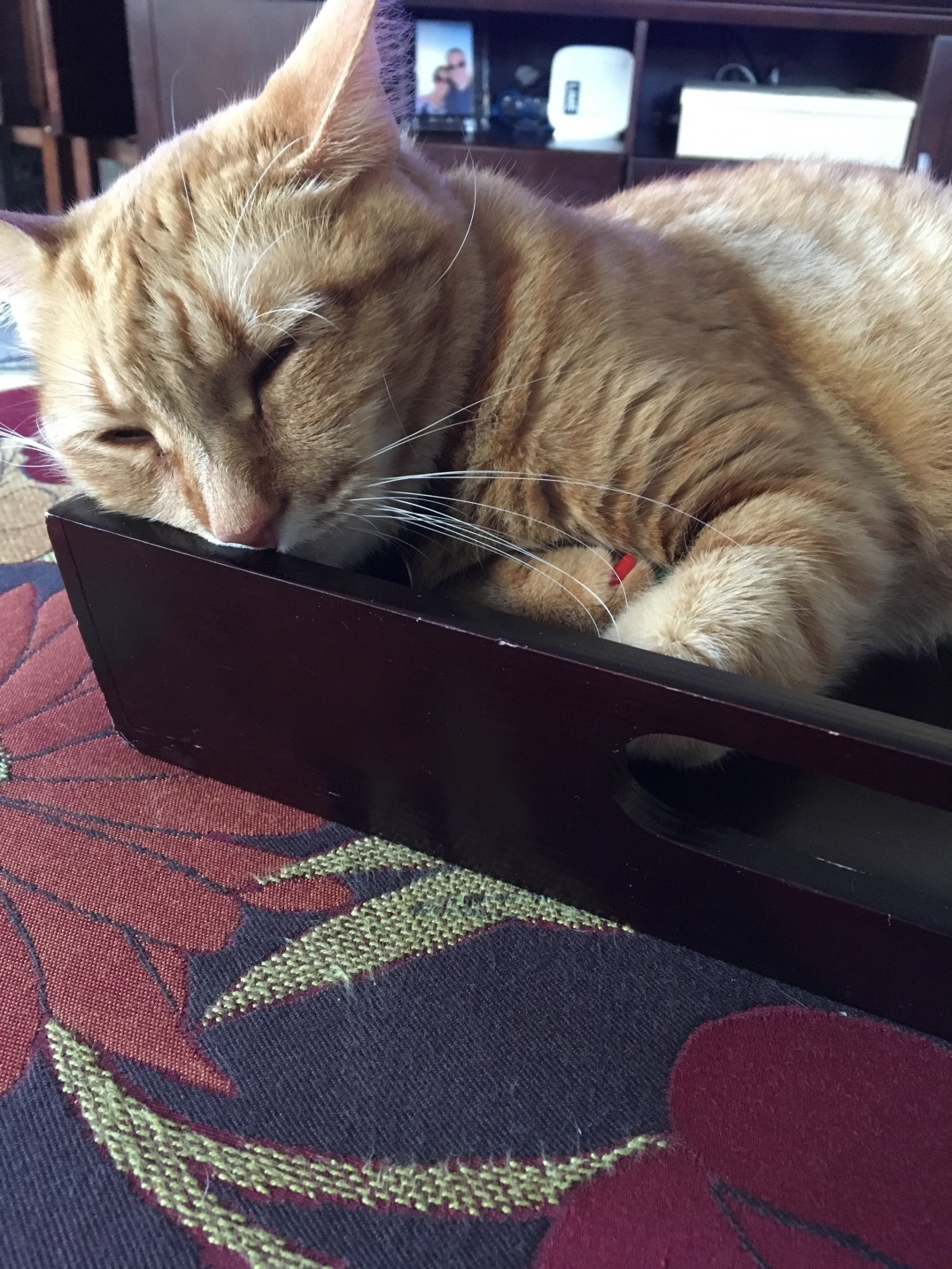 I was working in the kitchen when she came in the house to deliver a mouse (still alive of course). Luckily Laytoa was here to help me chase her out with the mouse but before we knew it she had it torn apart and was eating it. All she left was the head for me to clean up on our back patio!