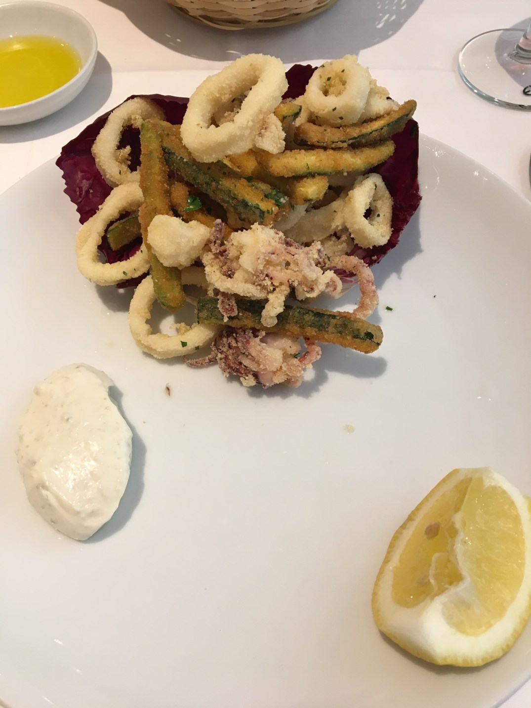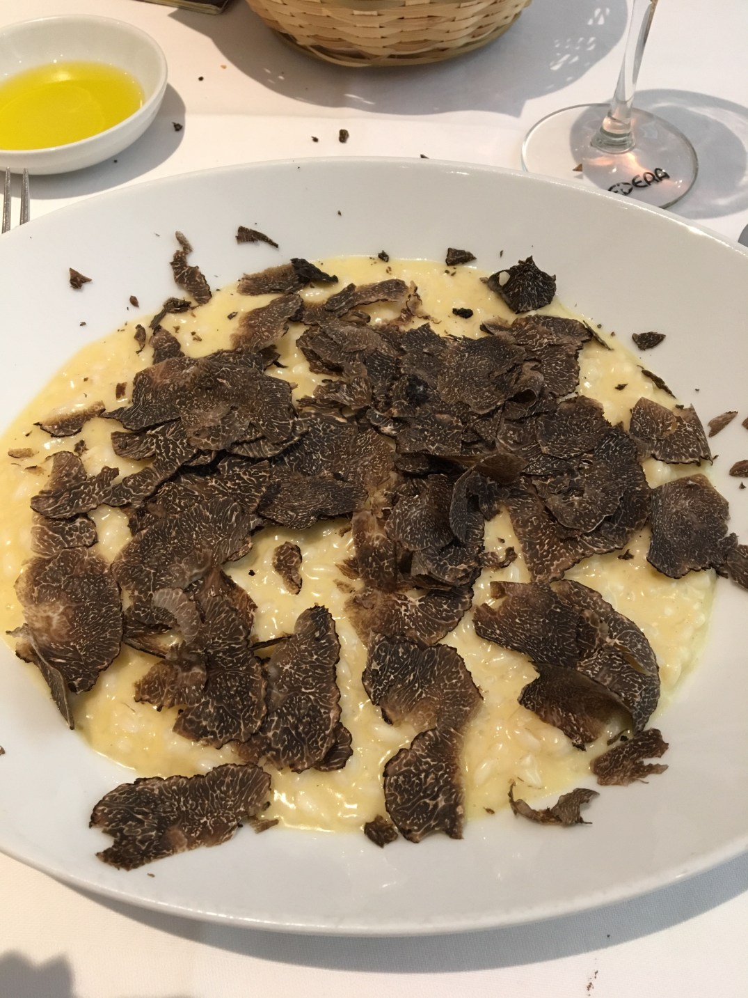 I started with fried octopus and zucchini. Then followed up with some risotto with black truffles. They shaved the truffles right at the table as well.