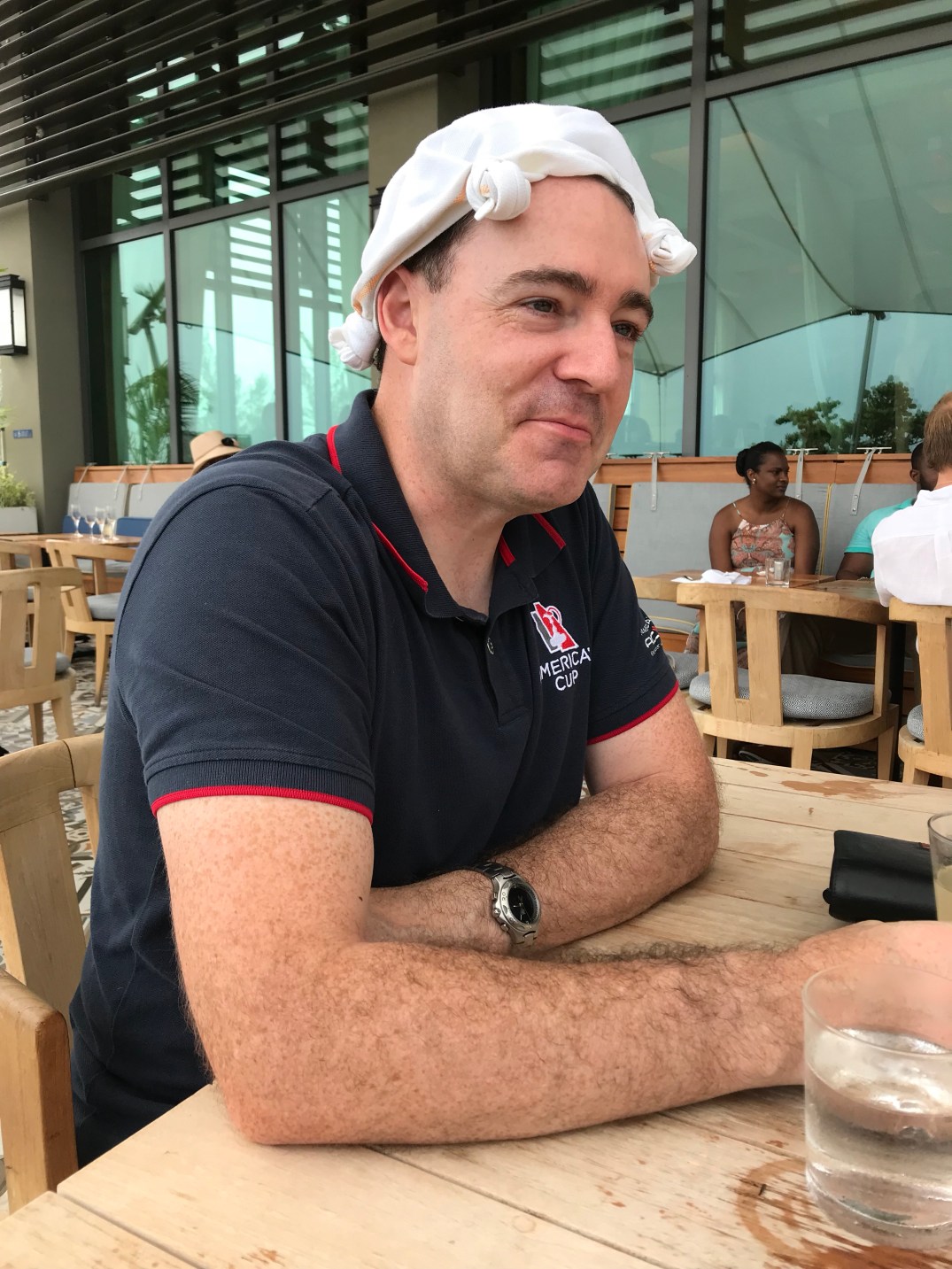 Richard also had a little fun with his napkin keeping his hair dry during the rain! I am not sure how successful he was!