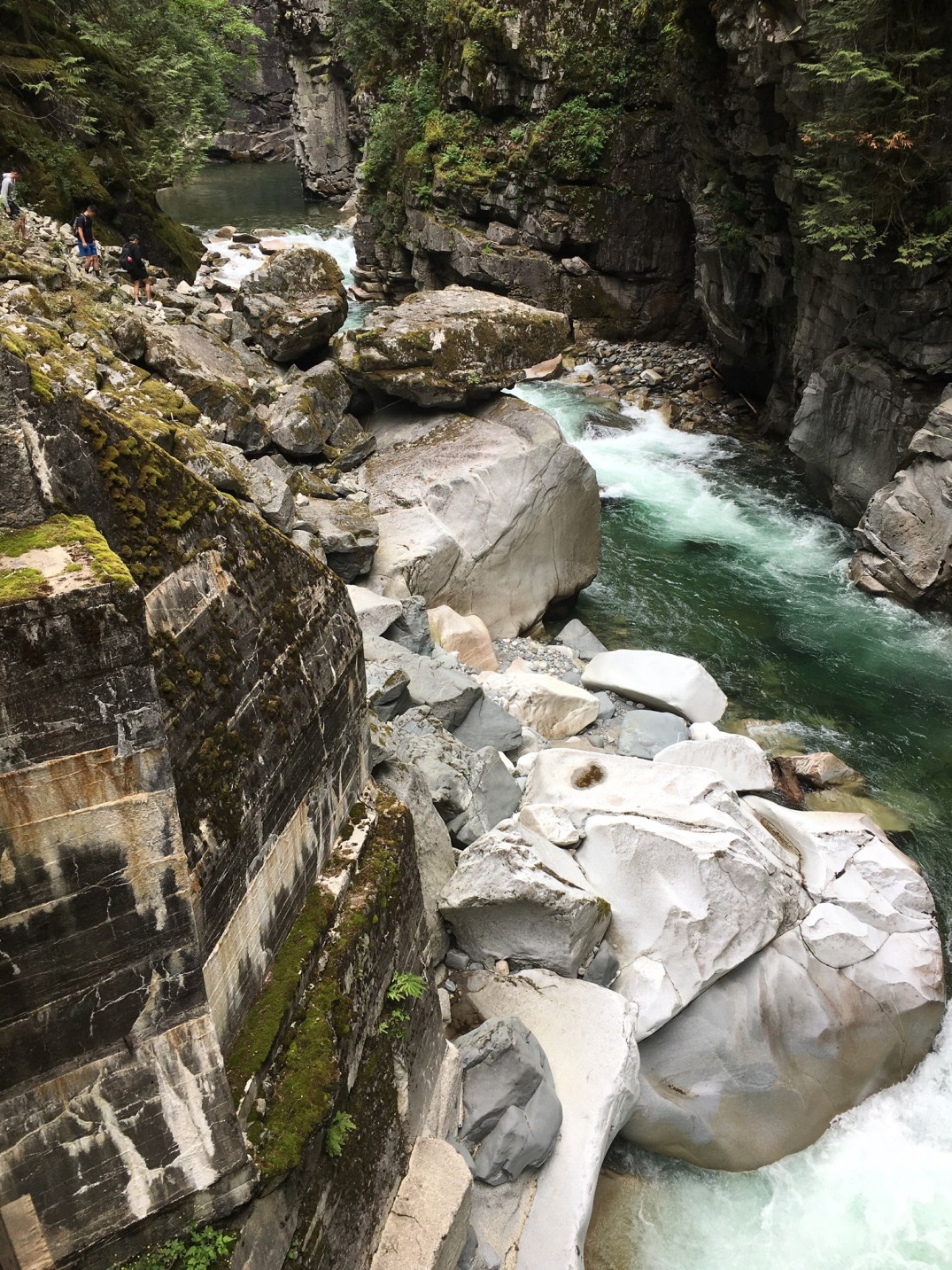 Today Steve and Sue took me inland (eastward parallel to the US border) across to Abbotsford and Hope. We stopped midway for a quick coffee before continuing on to Bridal Falls. Thankfully it wasn’t much of a hike up but the view was beautiful as was the forest on the way up. We continued on to the Othello tunnels where there are a number of abandoned railway tunnels from a now disused railway line. It was great to see the river running deep below where the railway lines had run, various tunnels having been blasted through the rock. We stopped for a late lunch back in the small town of Hope before taking the scenic route back home.