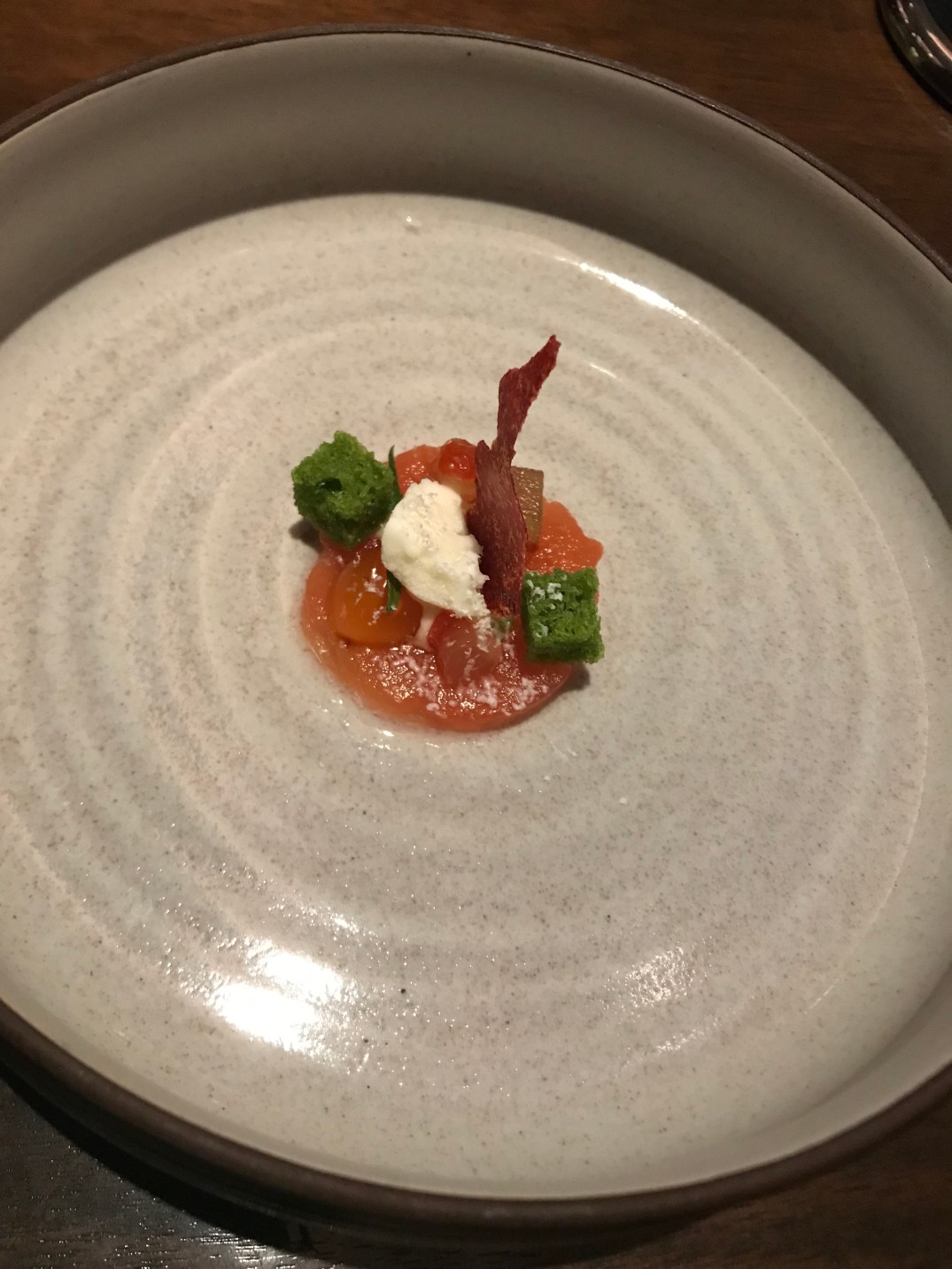 We got a table at Temporis for dinner last night. They only have 20 seatings a night so I was really excited! They don’t have a menu just a 10 course meal and We went for the reserve wine pairings.