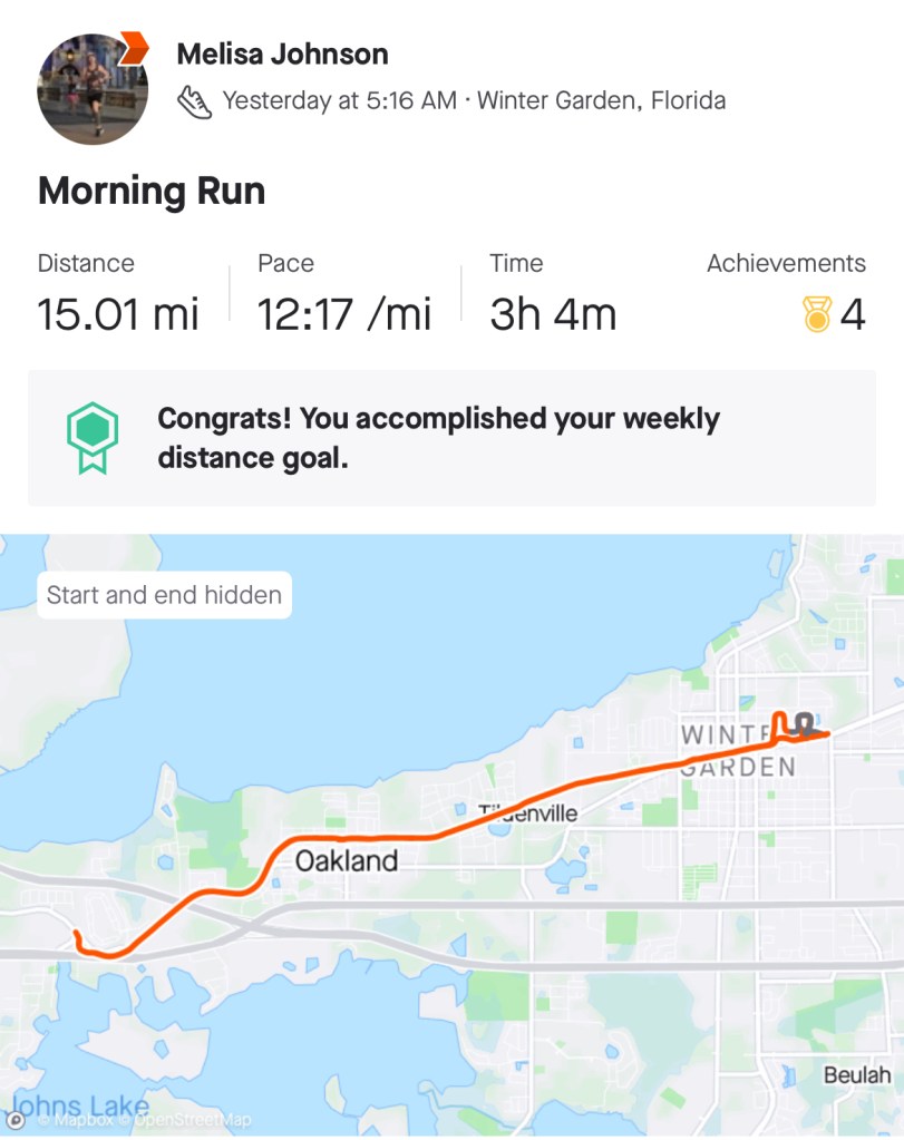 Yesterday started with my first long training run of 15 miles. I didn’t sleep well the night before and I wasn’t looking forward to running in the heat.. but I went out and completed the run. I was a mess when I finished!