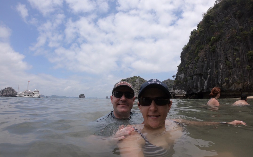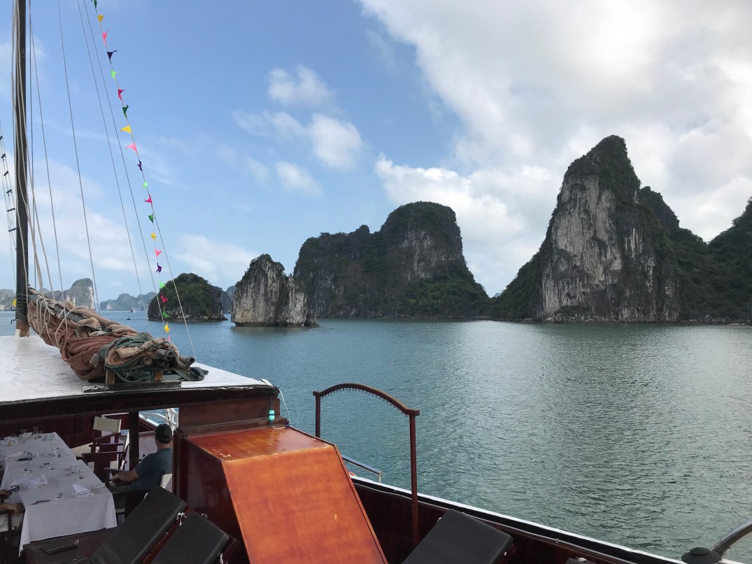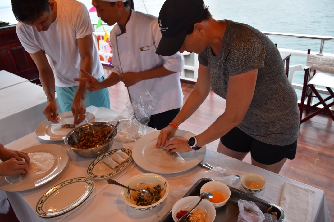 We then relaxed on the boat as we headed to a cave to explore and then had a spring roll cooking class before our final dinner on the boat. The crew made some decorations just for us as well.