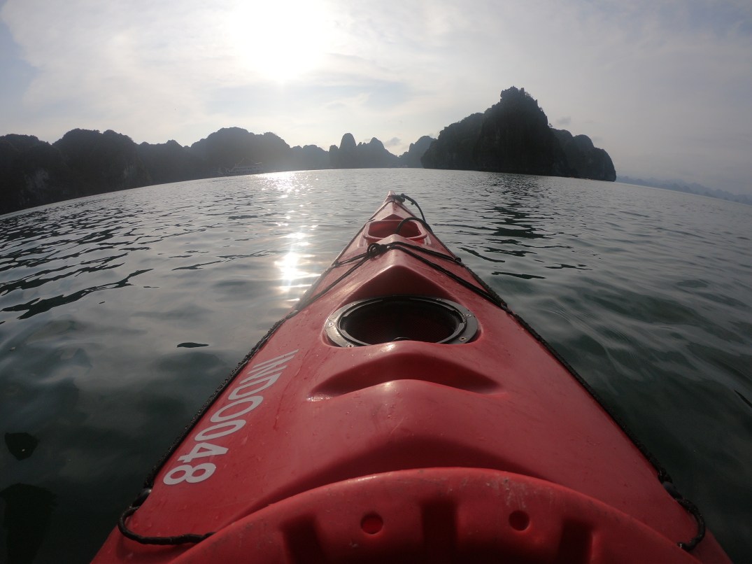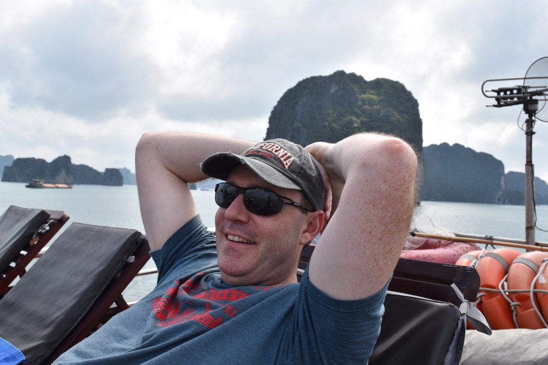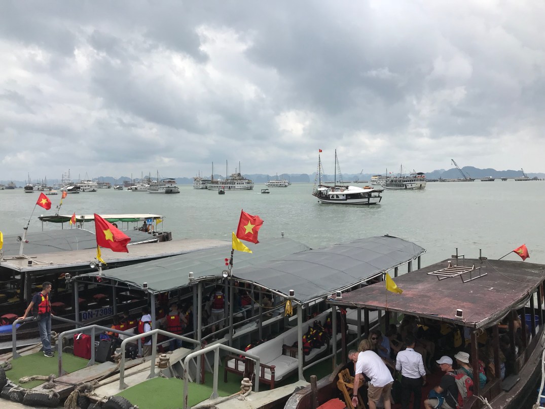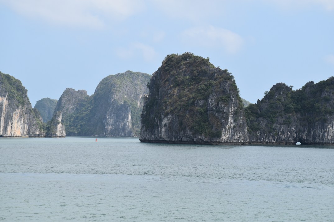 We arrived at the terminal and were grouped by our boats. Our boat is very small with only 4 rooms so we have 6 other passengers with us and about 4 crew. I was a little surprised to find out we were not going to Ha Long but also happy as it is full of tourists. Instead we are in Bai Tu Long. Which they call the baby dragons. We cruised for a few hours to get to our spot to anchor. The views were amazing.