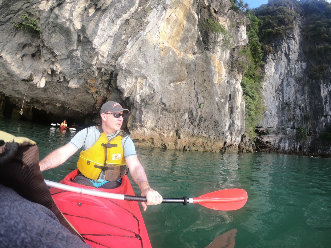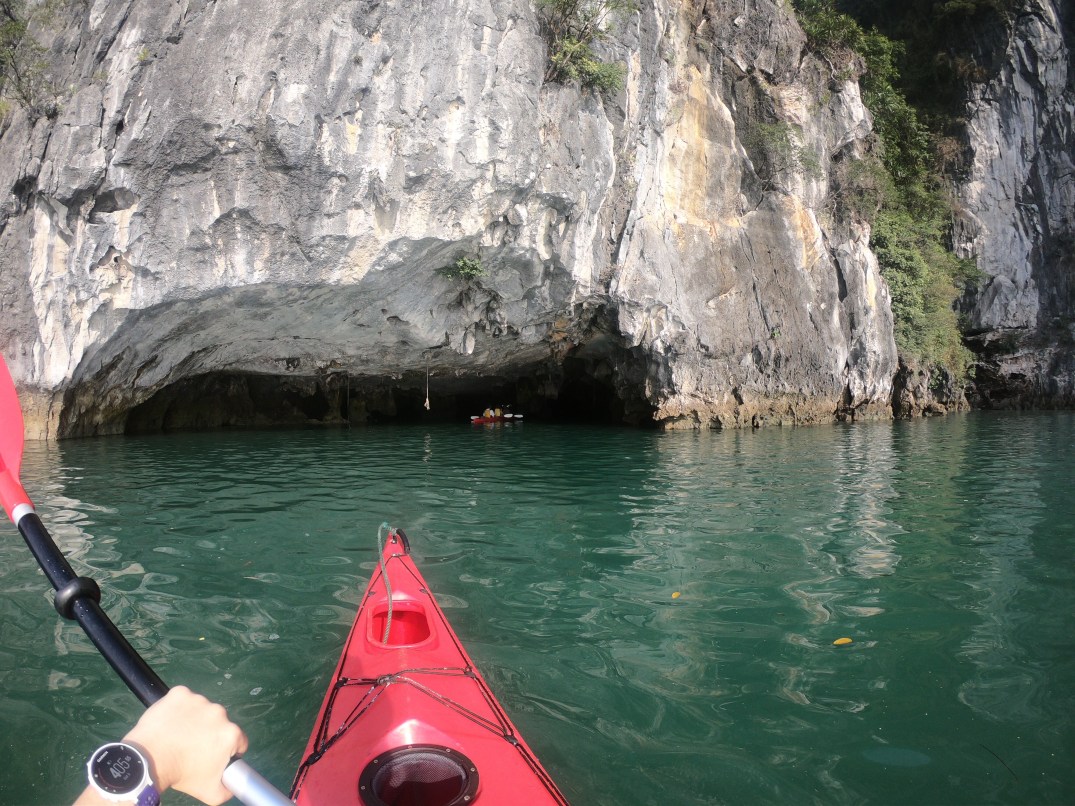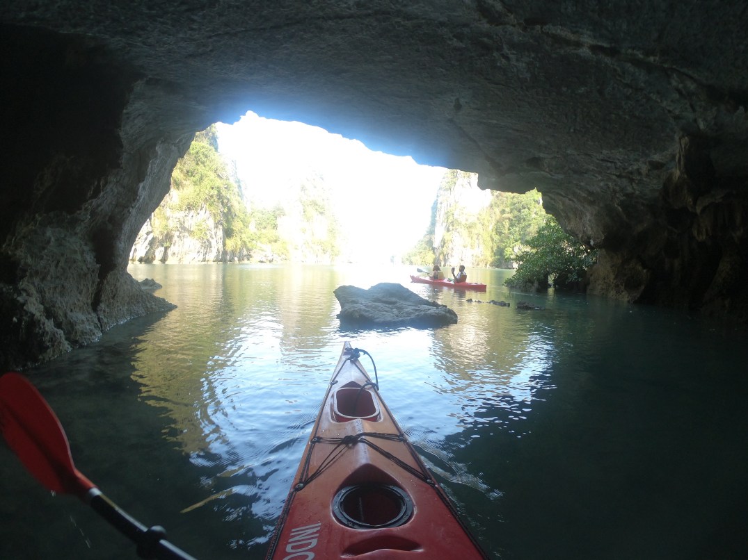 We got into our kayaks and went into a cave that is accessible only a few times a year. On the other side was an amazing lagoon. We paddled around and then went back through the cave to get out.
