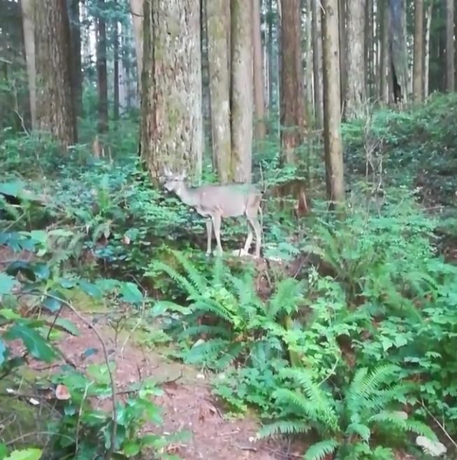 Well today Steve and Sue (mainly Sue) kept me busy! After a quick breakfast and waving Steve off to work, Sue and I set off on a long walk that took us down the side of the Capilano River to the shore where we walked along Ambleside seafront all the way to Dundarave. Along the way there were little parks, various children’s play areas, art exhibits and gardens that are being reclaimed by the provincial government so that seafront land cannot be developed. We raced back to see Steve for lunch at his workplace in East Vancouver before heading up to the Cleveland Dam which holds one of the reservoirs that provides Vancouver with its fresh drinking water. The dam and reservoir are set in an extensive forest, access to which is restricted so that no water contamination can take place. We hiked down to the bottom of the dam to see the falls and on the way saw a black bear munching on some greenery in the forest…my first, albeit very distant, encounter with a wild bear. Many thanks to my trusty guide Sue and her excellent bush tracking skills for noticing – I would have been oblivious otherwise! We carried on and saw the salmon ladder before hiking all the way back up to the top! An hour later Steve returned home from his day’s work and suggested that we go mountain biking…so out we went! It was a beautiful summer evening so we went up to Lynn Canyon Park for what ended up being a 13+ mile on road and off road cycle. Some trails were more interesting than others! However what was a former logging road has been closed to vehicles and so a perfectly good road is now used for cyclists, runners, walkers, roller-bladers, in line skaters and skateboarders. Off that road there are many forest trails around the various lakes. On one of those we can across a deer out eating her evening dinner – she was far away at first but we remained still and quiet and she came within 20 feet of us before we decided to back away and leave her in peace. A very full but thoroughly enjoyable day!