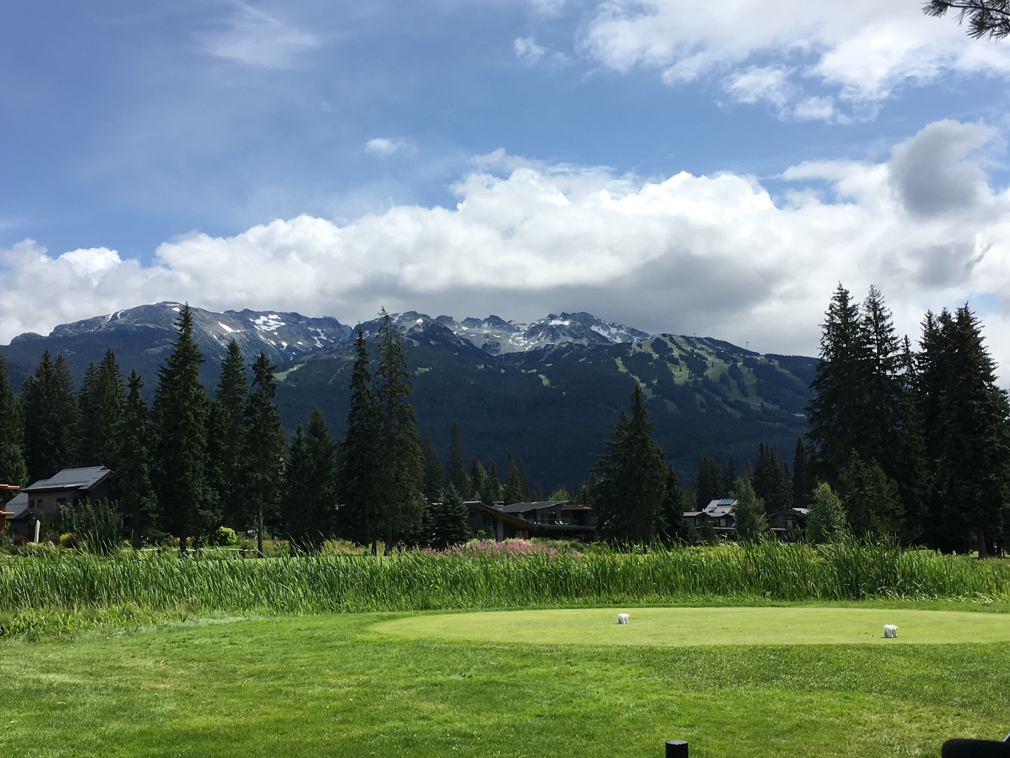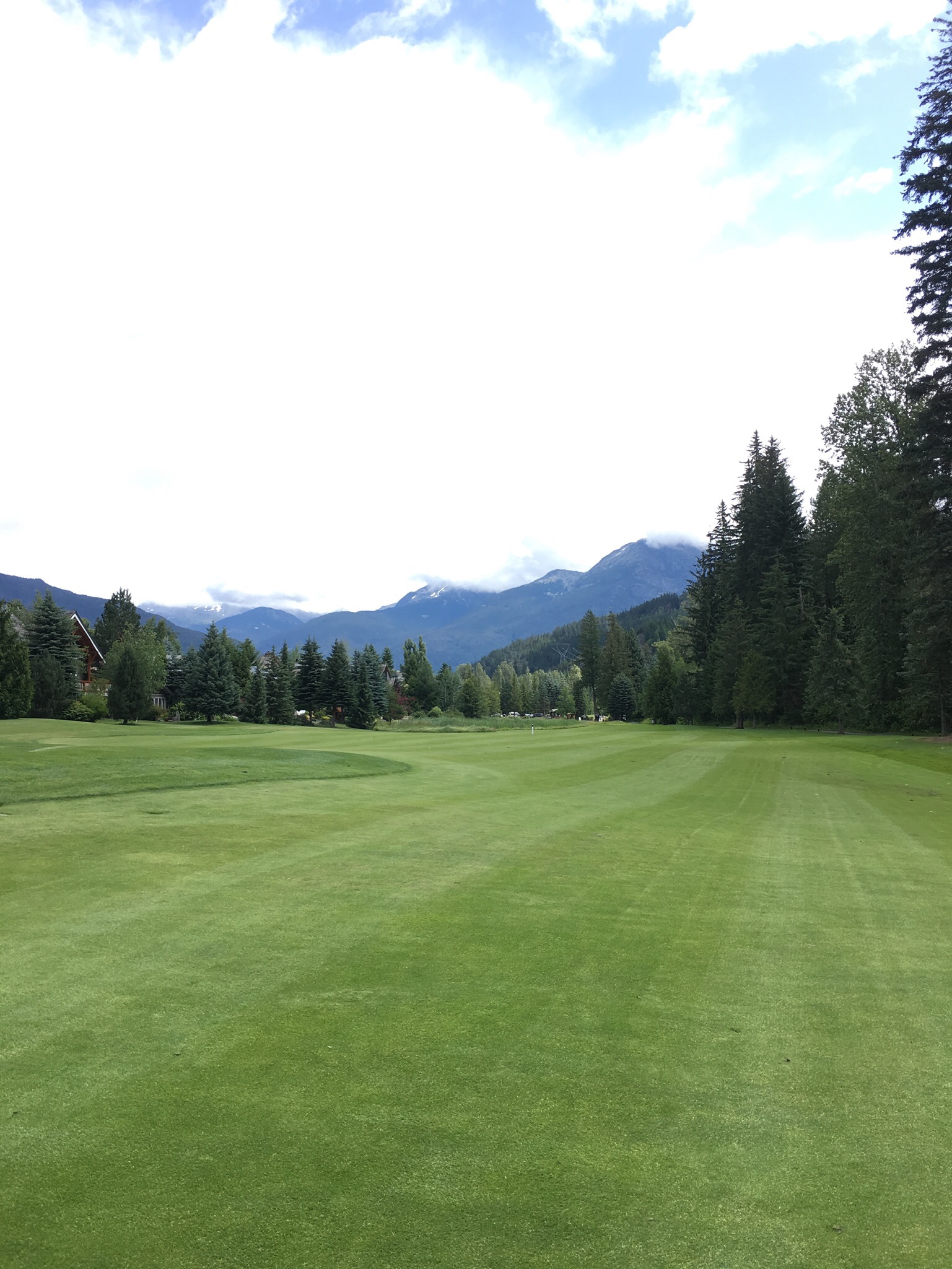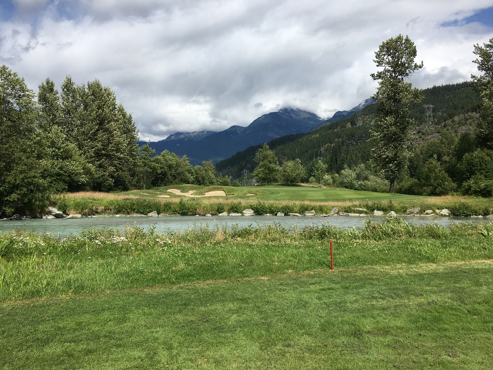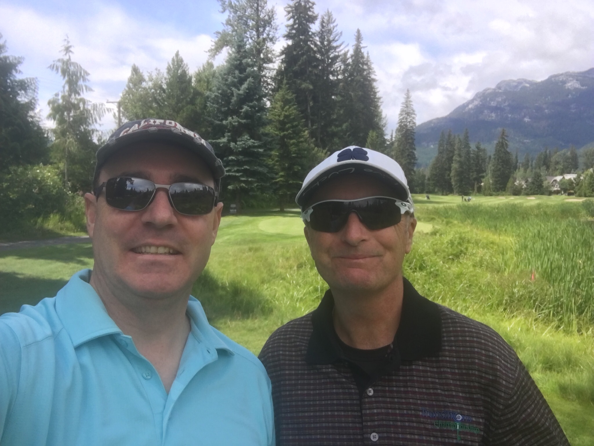 On Thursday Nick had organized a round of golf at the nearby course where he sometimes marshalls and plays. However before golf the day started early as I went to the gym with Kirsten at 6am…having seen how seriously people work out I can definitely say that Whistler is the Boulder of Canada. Later we walked down to a nearby restaurant for breakfast with the dogs to get ourselves ready for the day. The weather again cooperated and, despite being a bit windy and sometimes chilly, it was an otherwise good day. While my golf was mediocre for most of the round (one par and a few bogeys excepted) it was a great day out on a very nice course in a great setting, and to continue catching up with Nick as we made our way around the course. I stopped by Bigna and Monika’s hotel to see how the patient was doing and the result was not well. A follow up with the doctors had resulted in a a recommendation that she get an MRI on her damaged knee – it had given her severe trouble overnight. Unfortunately that meant that the mountain biking part of her holiday was most definitely over. They would have to head to Vancouver first thing in the morning. While Monika was still sleeping due to the effects of the drugs she had been prescribed I caught up with Bigna over a few beers before heading back to the apartment to join Nick and Kirsten for dinner with their neighbours, Hal and Sue, who are long time residents of Whistler. Dinner was stupendous (thanks Kirsten!) and the conversation flowed well into the evening.