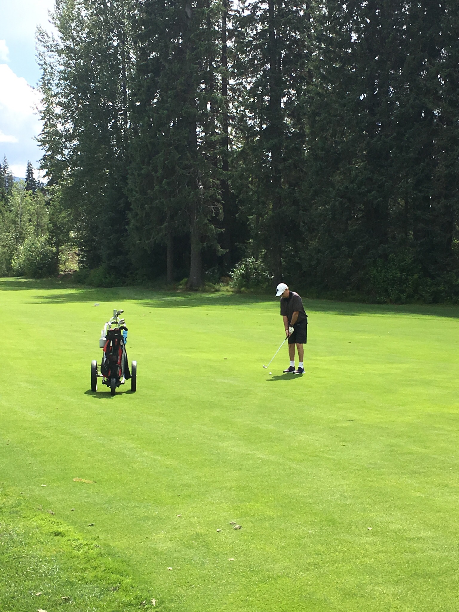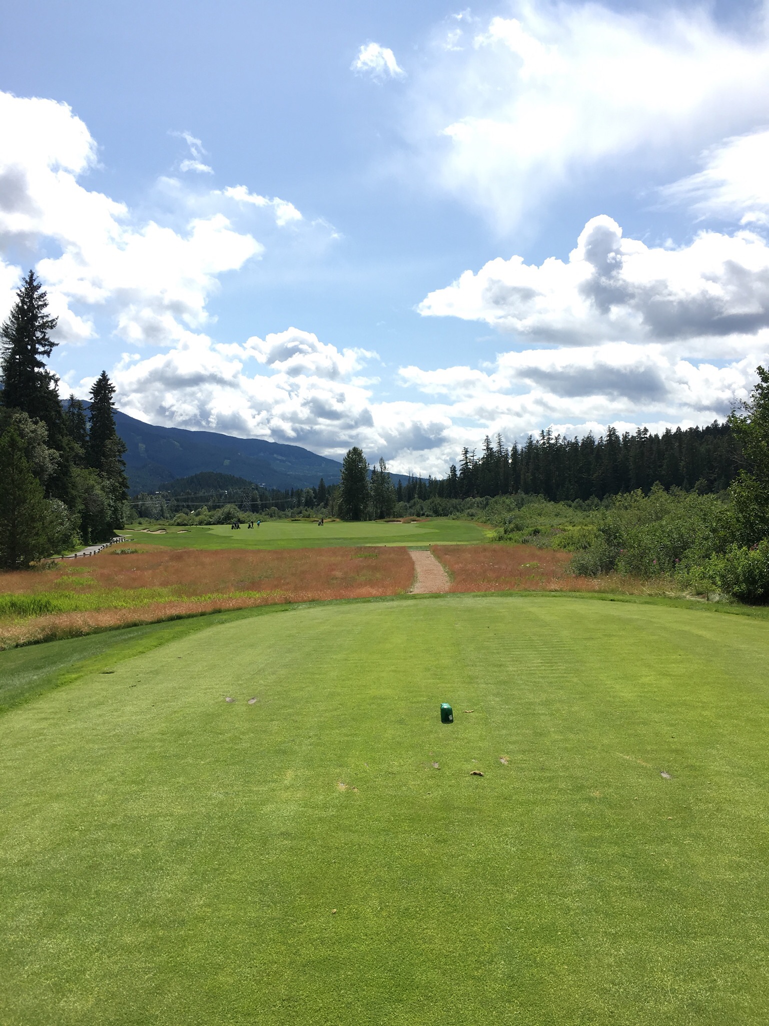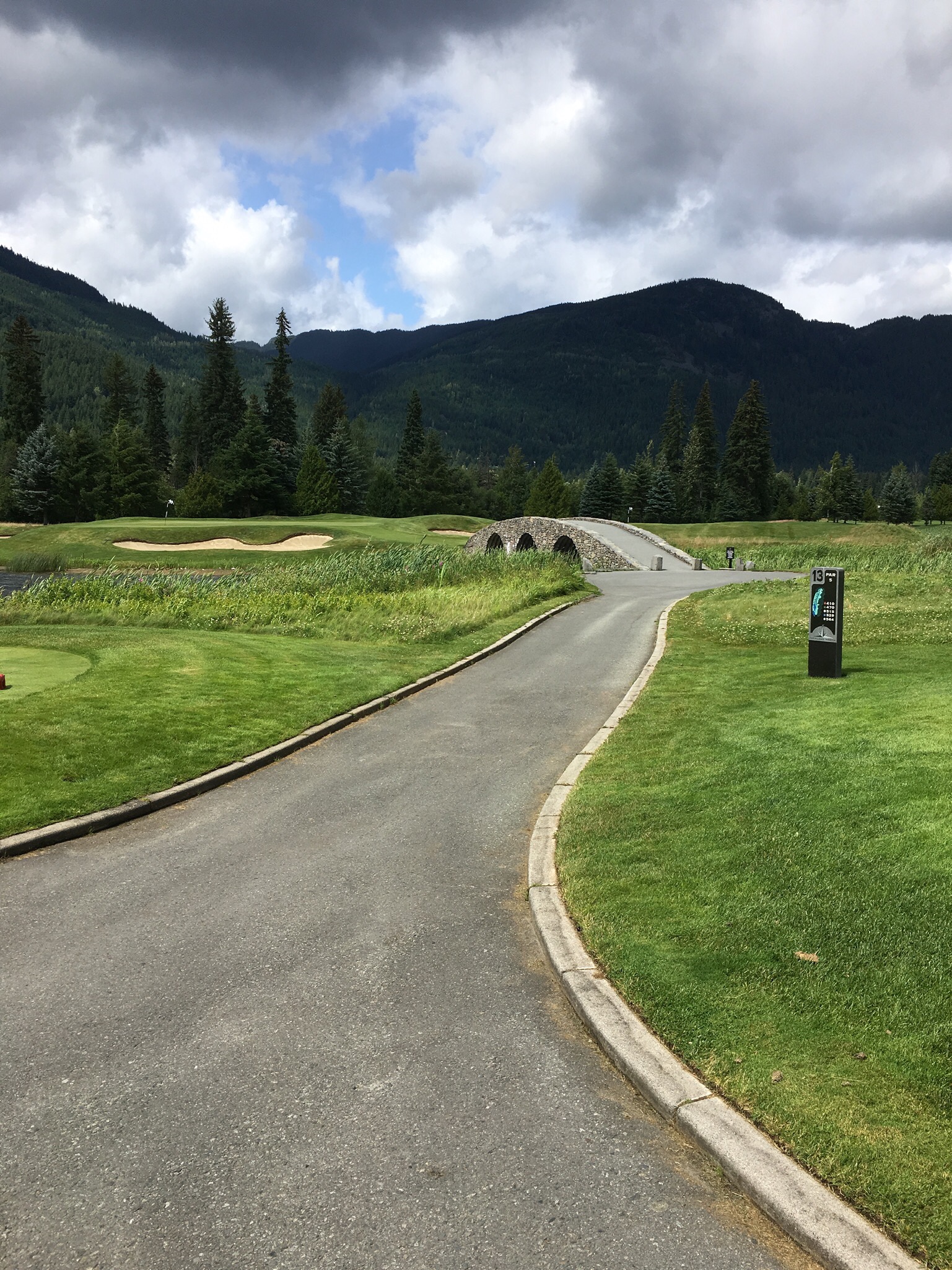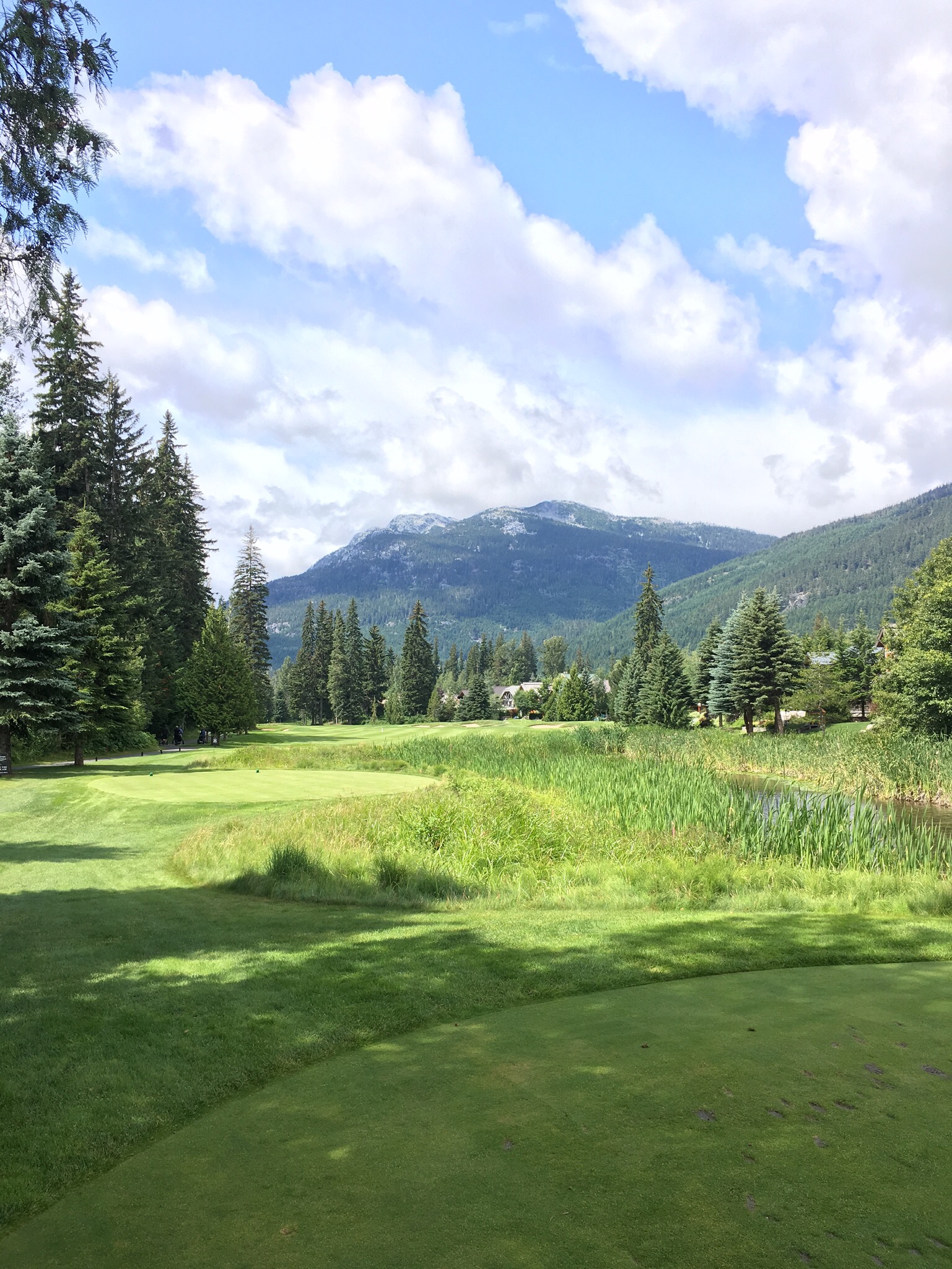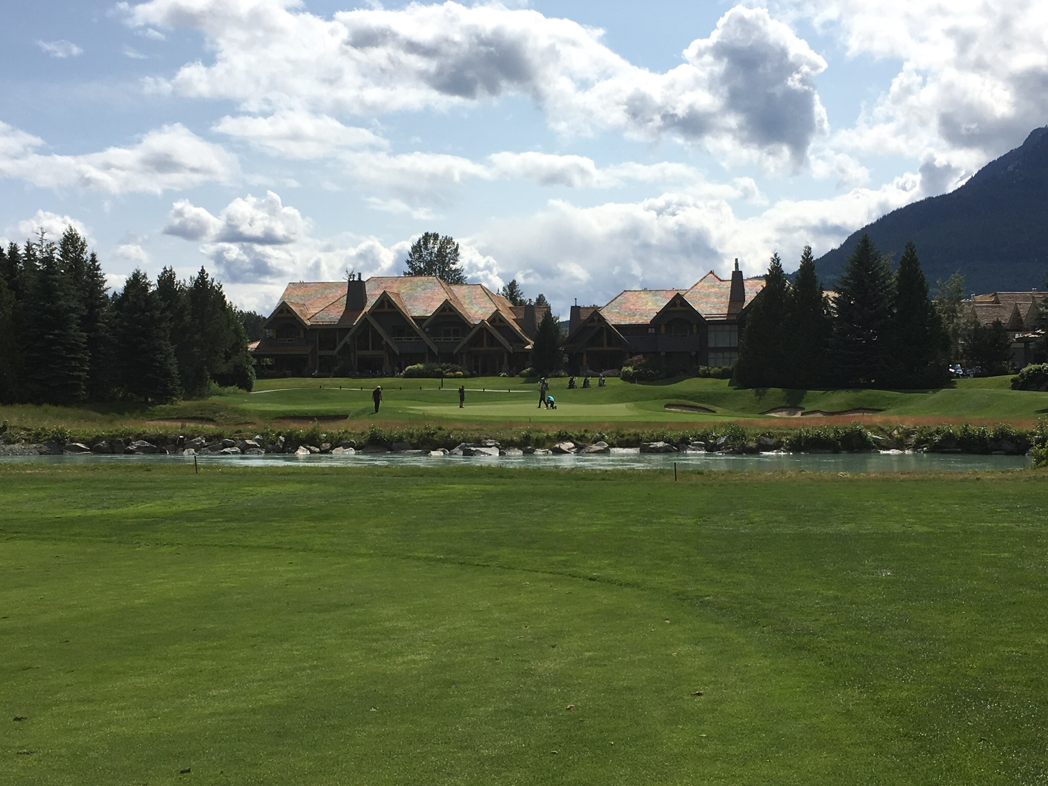 On Thursday Nick had organized a round of golf at the nearby course where he sometimes marshalls and plays. However before golf the day started early as I went to the gym with Kirsten at 6am…having seen how seriously people work out I can definitely say that Whistler is the Boulder of Canada. Later we walked down to a nearby restaurant for breakfast with the dogs to get ourselves ready for the day. The weather again cooperated and, despite being a bit windy and sometimes chilly, it was an otherwise good day. While my golf was mediocre for most of the round (one par and a few bogeys excepted) it was a great day out on a very nice course in a great setting, and to continue catching up with Nick as we made our way around the course. I stopped by Bigna and Monika’s hotel to see how the patient was doing and the result was not well. A follow up with the doctors had resulted in a a recommendation that she get an MRI on her damaged knee – it had given her severe trouble overnight. Unfortunately that meant that the mountain biking part of her holiday was most definitely over. They would have to head to Vancouver first thing in the morning. While Monika was still sleeping due to the effects of the drugs she had been prescribed I caught up with Bigna over a few beers before heading back to the apartment to join Nick and Kirsten for dinner with their neighbours, Hal and Sue, who are long time residents of Whistler. Dinner was stupendous (thanks Kirsten!) and the conversation flowed well into the evening.