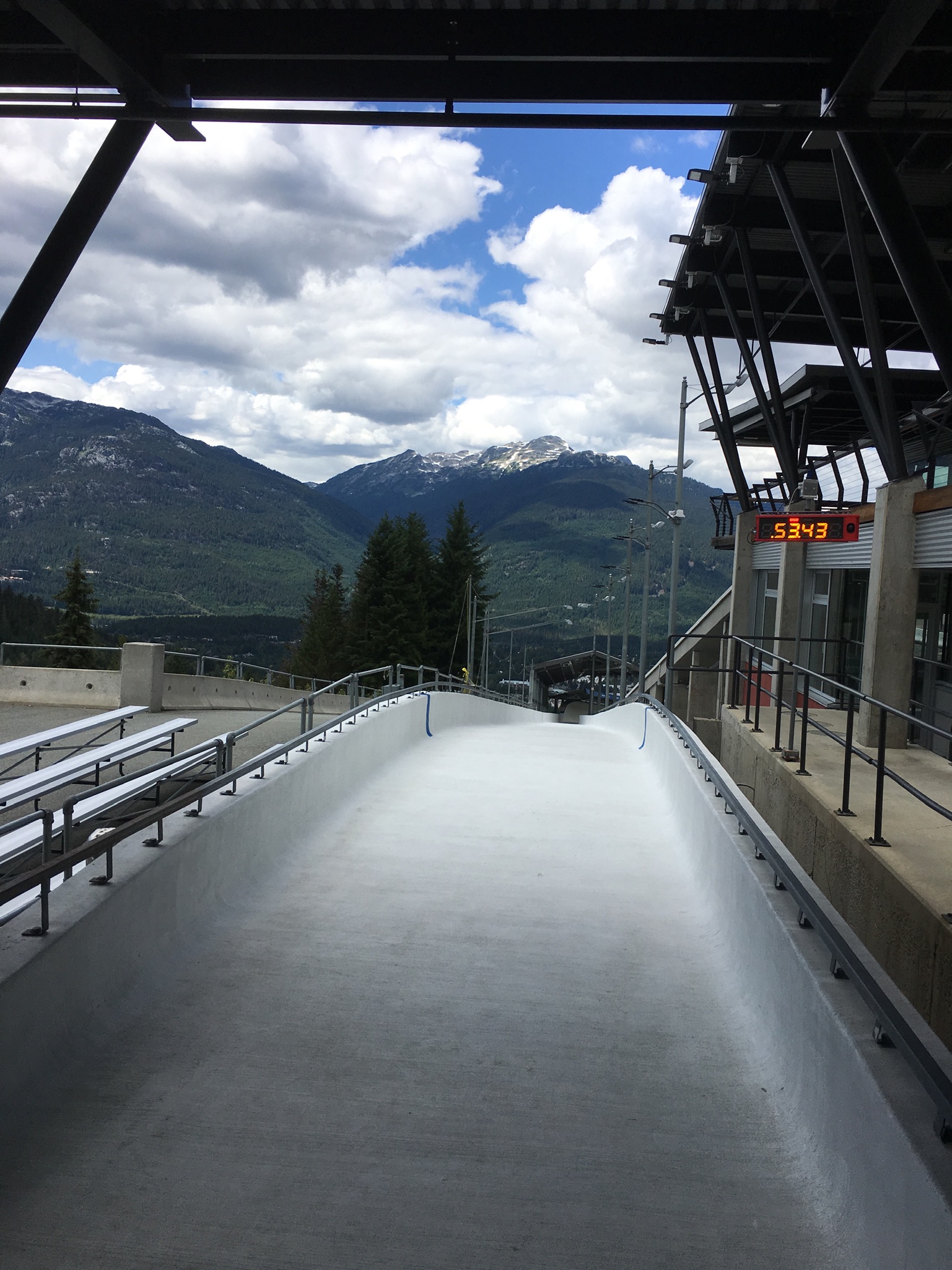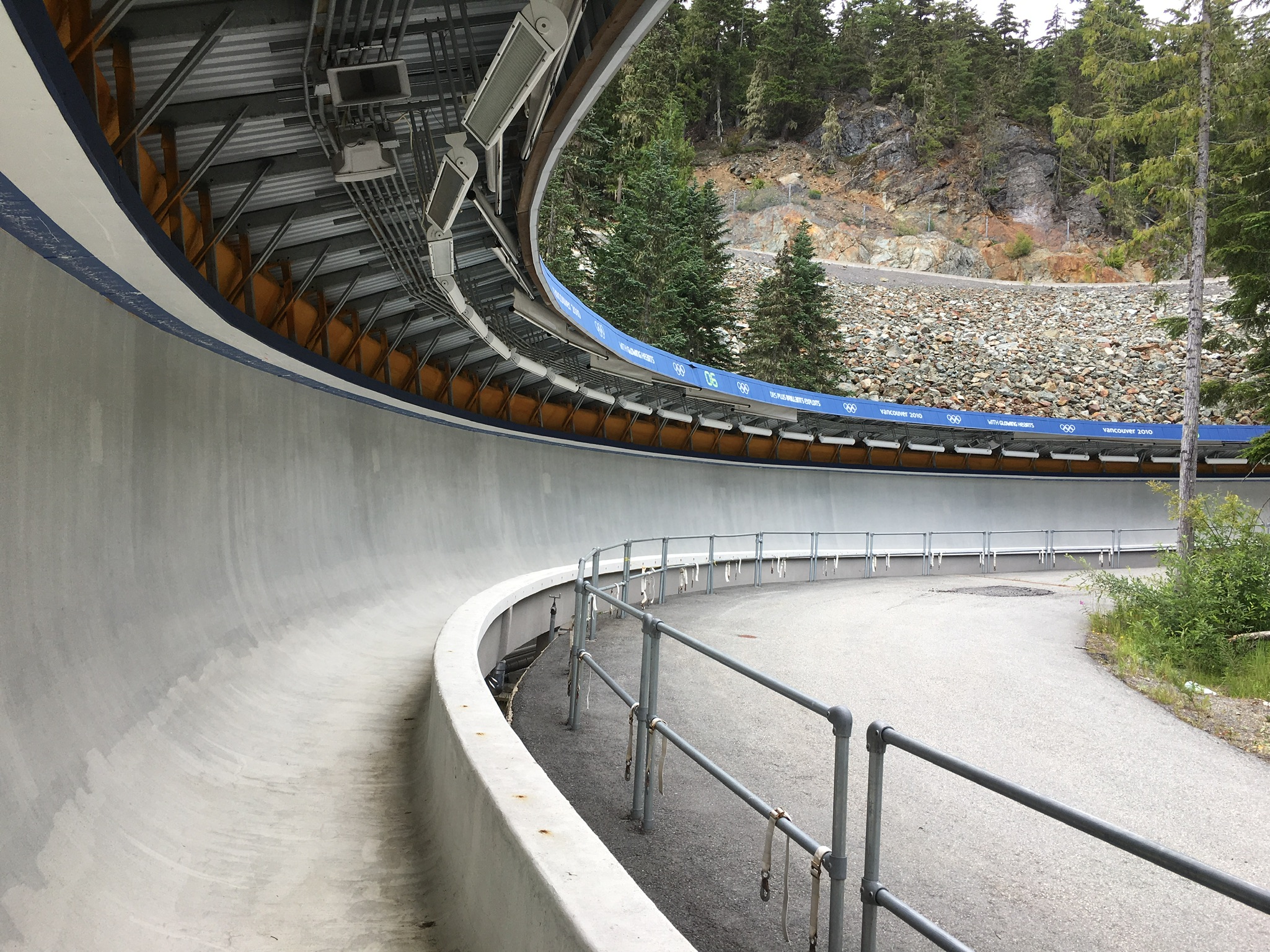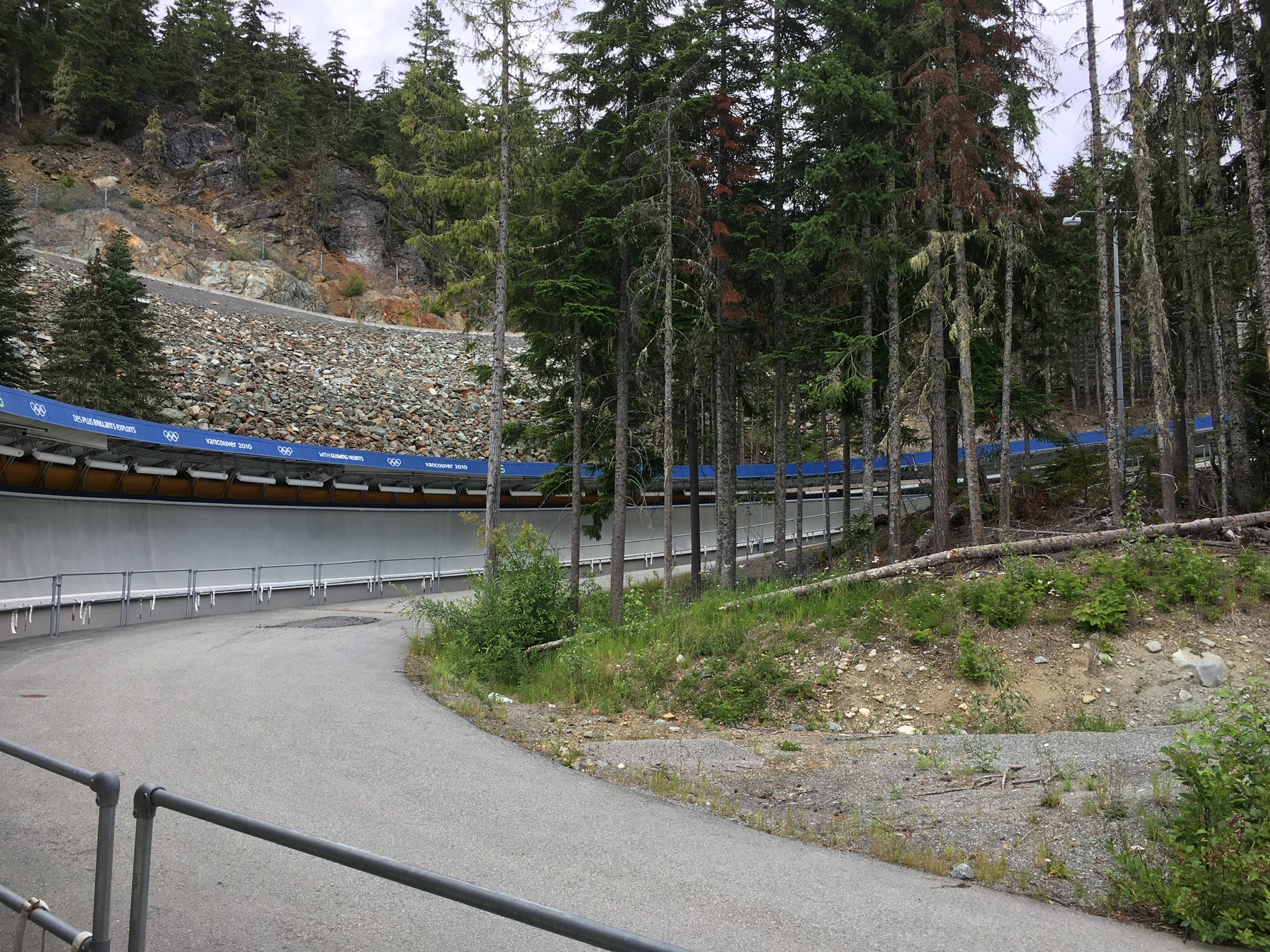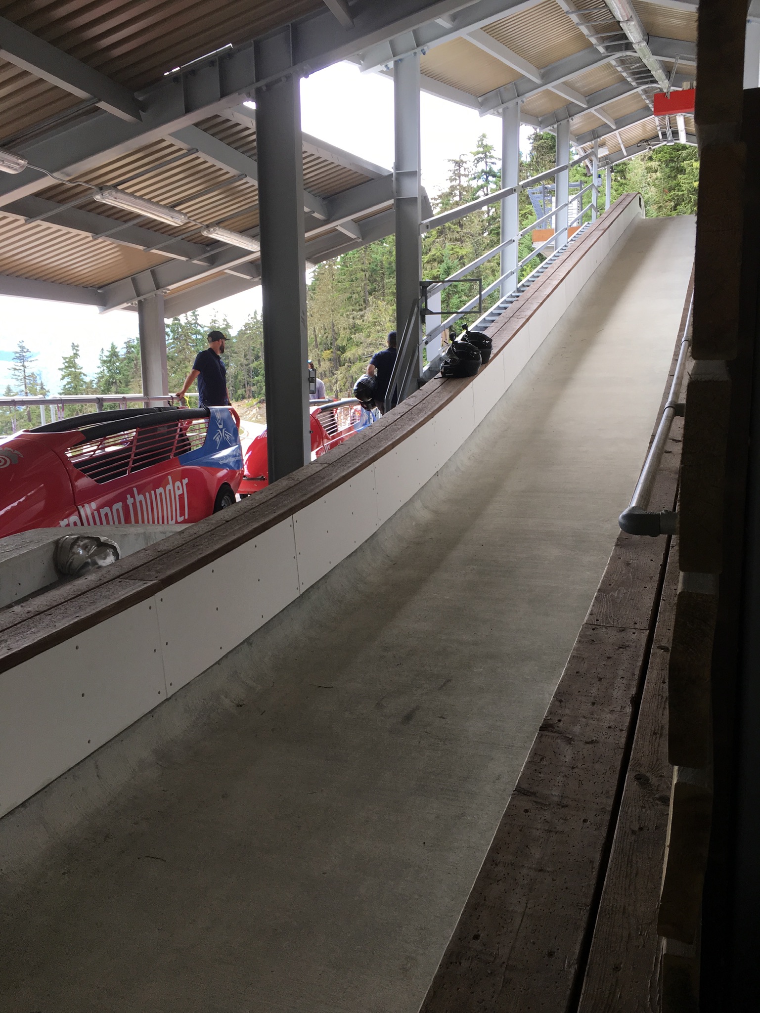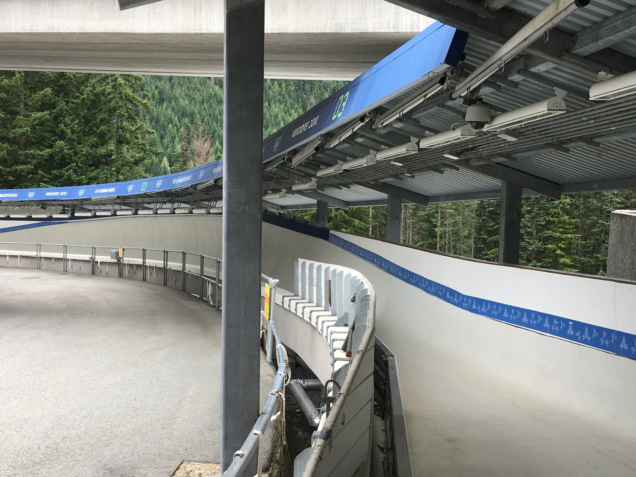 Today I had booked a morning at the bike park to learn about how to ride trail bikes off-road. After getting kitted out in body armour and sized for a bike we set off with our instructor to load the bikes on the chairlift. Once up top we learned the importance of one finger braking, positioning on the pedals and leaning into turns. Very different from riding a traditional mountain bike but these lessons would prove invaluable later in in the day. Our first run was an ‘easy’ run with many stops where we were told how to handle the corners and the more tricky parts of the trail. It was hard work but interesting and the advice to look at what’s coming ahead rather than where you are right now came in handy more than once. On our second run we did a different variation of the same run with the instructor taking us at a faster pace. Of course this is where inexperience, complacency and over confidence come into play. We all had our moments but thankfully no one fell off. However there was a moment where we were split between a father and young son on the trail. The father was leading and going into a big right hander the kid just barreled straight on and disappeared, falling about 20 feet through the trees. Two of us jumped off our bikes and scrambled down to him – no broken bones thankfully but a nasty chest / stomach injury as he had caught himself on a big branch. Eventually his father came back but by then we had asked the bike patrol who came and got him. After that excitement we did a more technical and twisty blue run which required a lot of concentration. That was a LOT of fun. That took us up to lunchtime but was a great introduction to off road biking and if I had tackled the mountain without any training I would have for sure ended up having a few tumbles! From there is was a quick scramble to the Whistler Sliding Centre to be taken down the bobsled track – learning about how the track was built and the history of the centre was interesting as was the ins and outs of bobsled and luge/skeleton construction and the various competitions. However the best part was going down the run itself in a modified bobsled. It certainly was not a comfortable ride and I was glad for the padding on the side of the sled as we went down however it was an exhilarating experience and one that I would highly recommend. It was hard to believe that it was now 4pm and I wondered where the day had gone! Nick picked me up and we took the dogs for a walk in Meadow Valley Park. A quick turnaround at the apartment and it was out for a nice dinner at The Keg followed by an evening watching Fin de Fiesta perform Flamenco at the Performing Arts Centre.