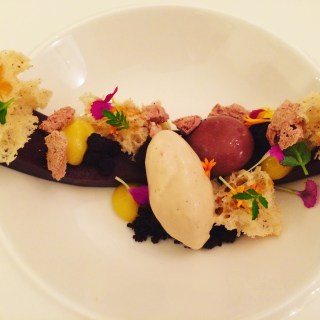 The main course was prepared by Frederic Morineau and consisted of a Niman Ranch Lamb with a comfit, belly and roasted rack, goat cheese mash, eggplant caviar, cumin and honey glazed local carrot. Probably not my favorite course, but very nice. The wine however was a bit much with this as well- a Montes Purple Angel from 2012.