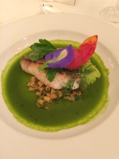 The second course was prepared by Chef Shetty Vidyadhara and paired with a Comtes Lafon Sancerre. The course consisted of a seared diver scallop with a callaloo puree, tomato chutney and a mandarin drizzle… amazing.