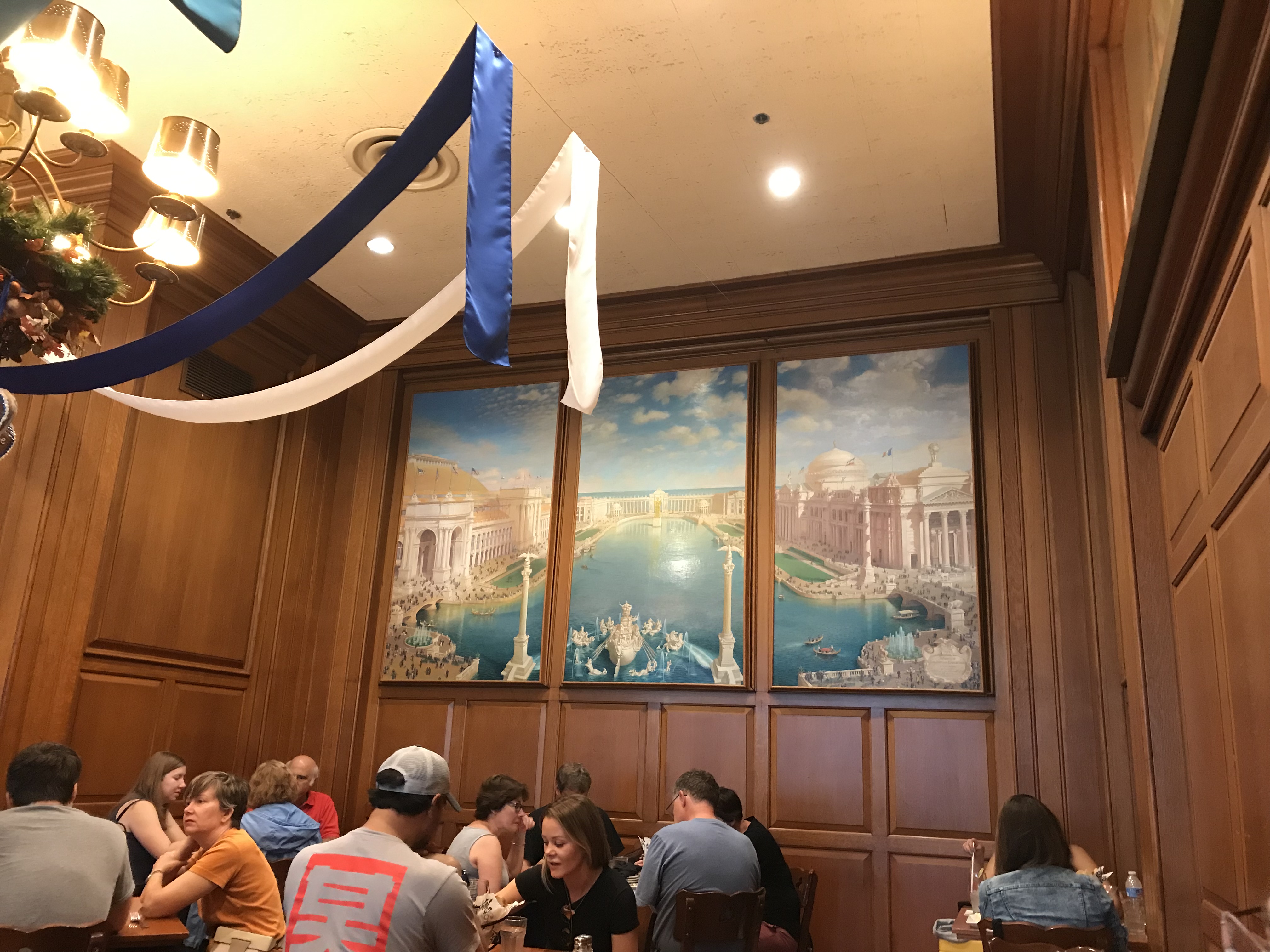 It looked more Italian or Greek to us. Turns out the painting is of Chicago during the World Fair where they got their start selling beer. Only a small building is left and is now a museum.