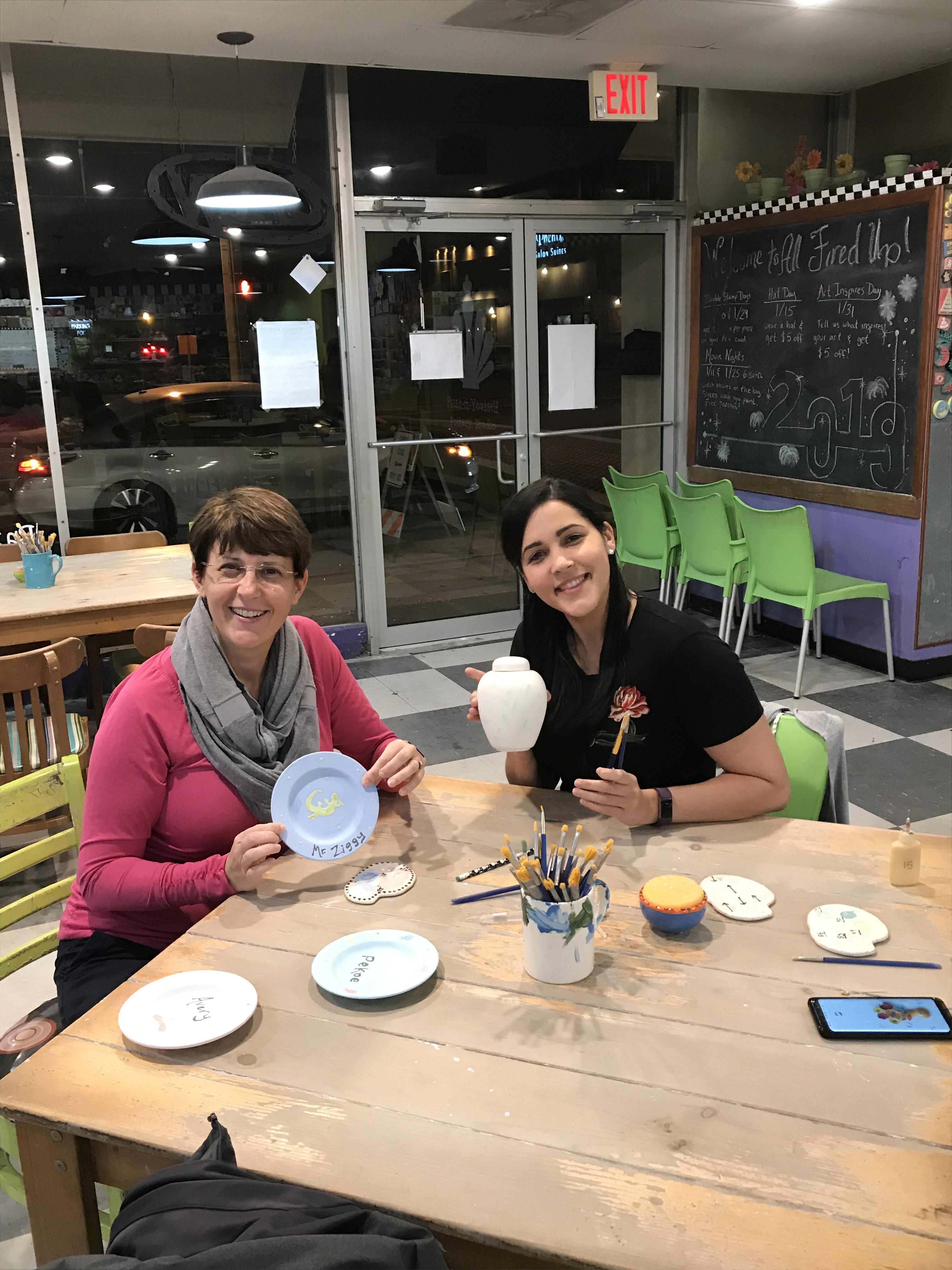 Last night Lilly and I got out and painted some pottery for the first time. It was a lot of fun! Each kitty will get a new food dish in about a week!