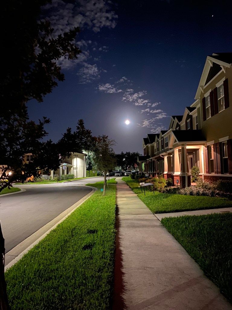 Halloween in 2020 brought us a blue moon and it was a beautiful night out. To play out part in social distancing we put a table full of individual treats out and met up with our neighbors for some pizza and drinks outside. Other than the mosquitos it was a really nice night!