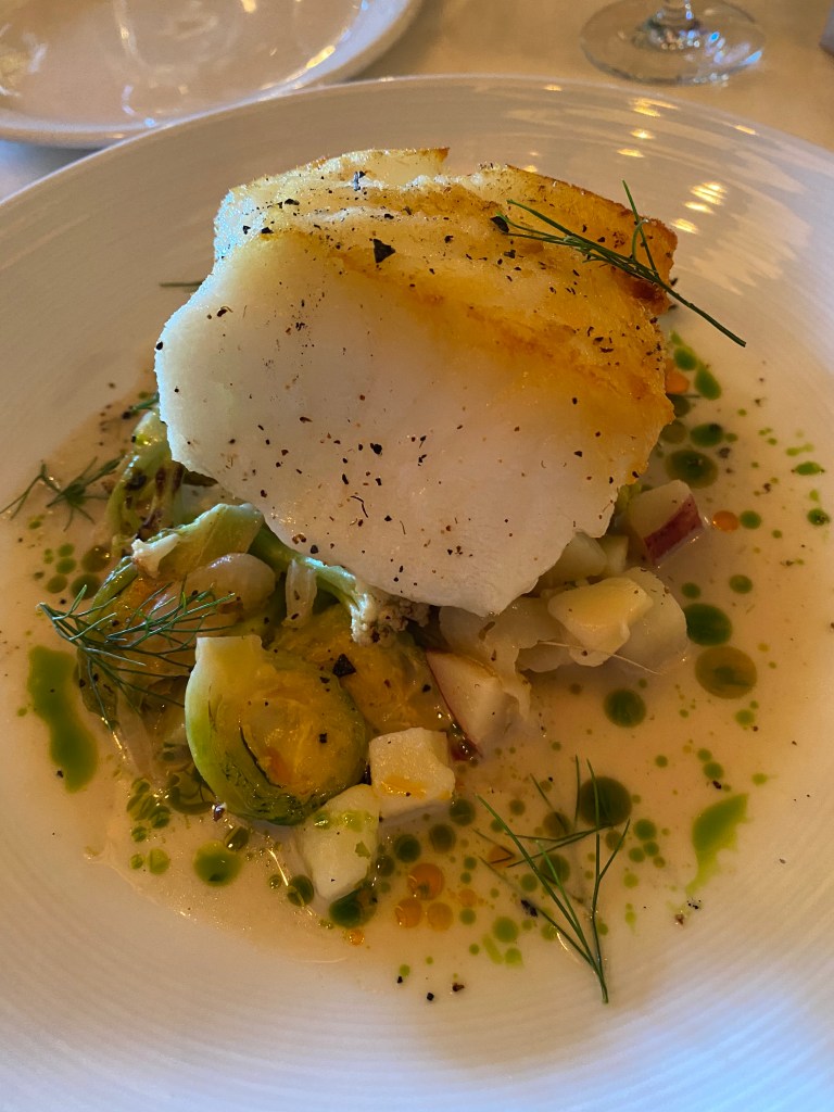 The main course was really done very well. The lentils were a nice addition to my fish and it had a nice crust on it. Richard ordered chicken and other than it being on the bone it was tasty.