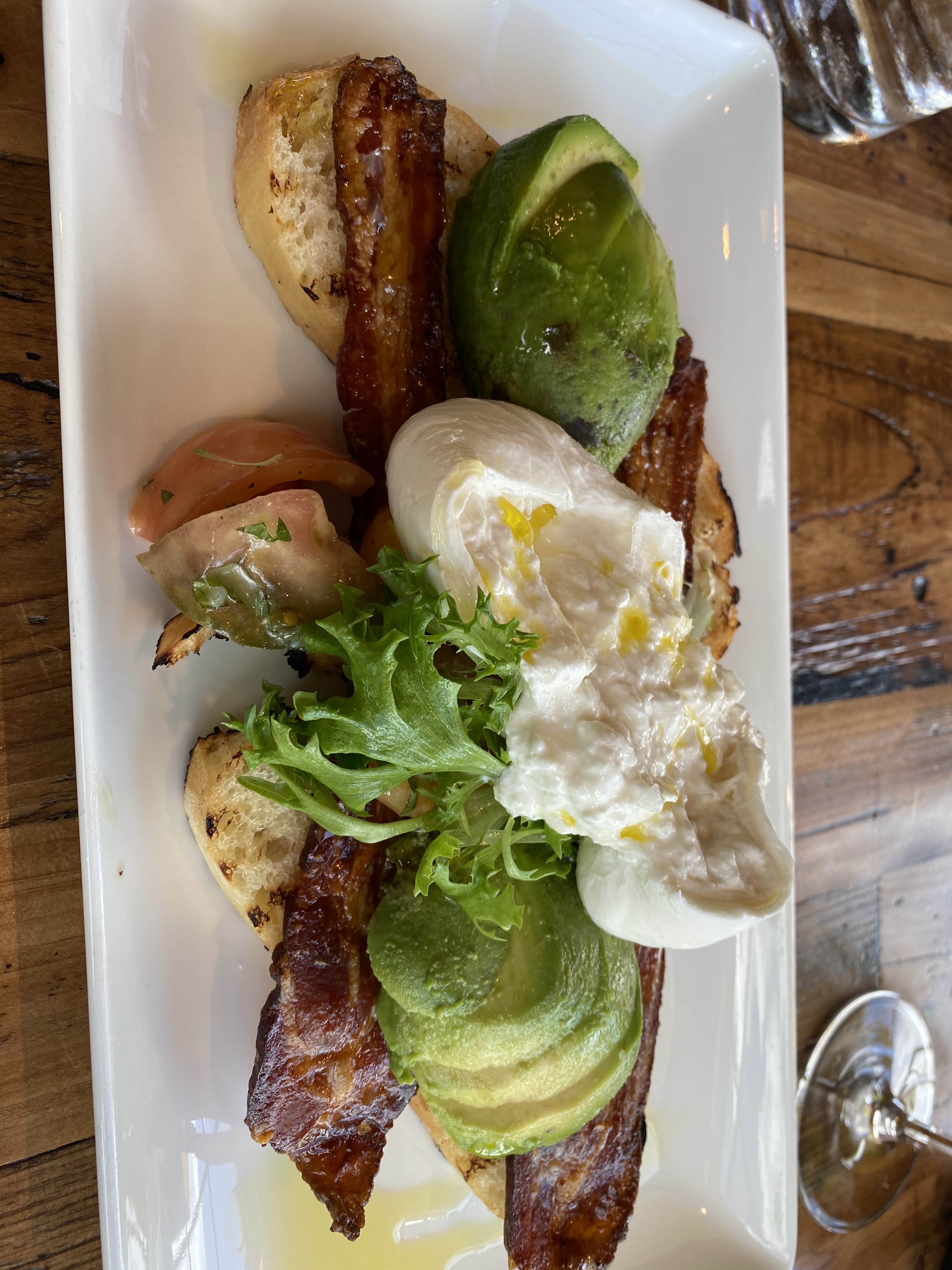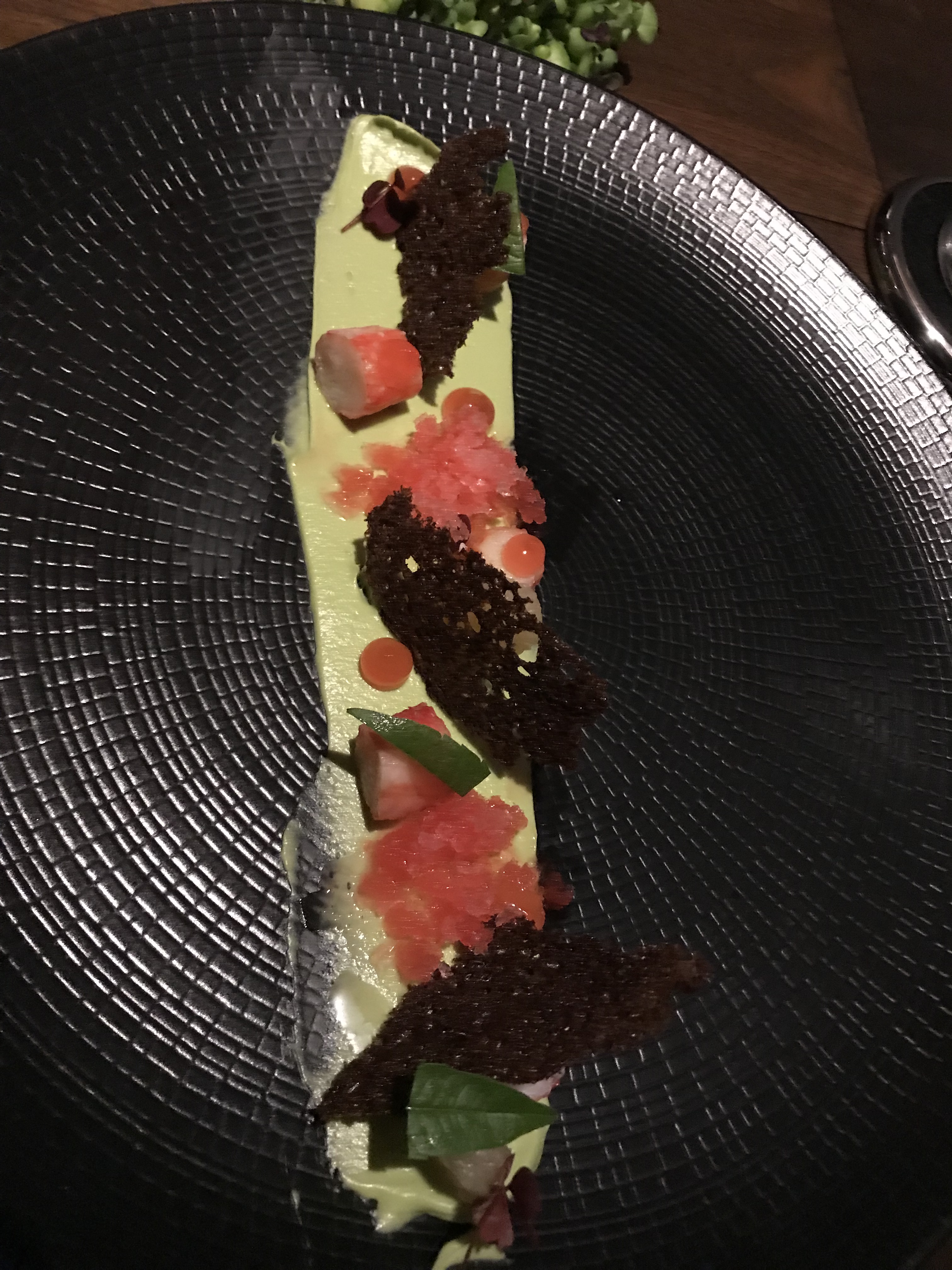 Third was Crab. Avocado on the bottom. Grapefruit3 ways pumpernickel toast.