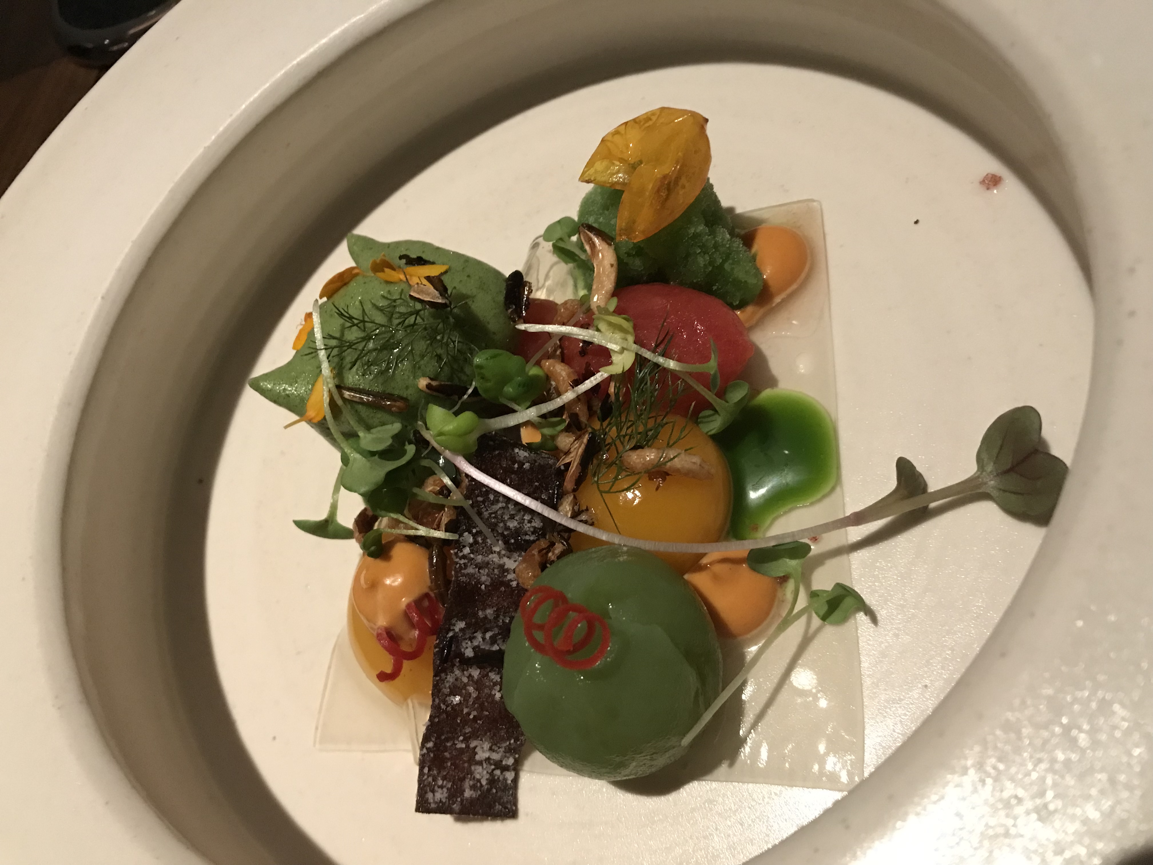 We got a table at Temporis for dinner last night. They only have 20 seatings a night so I was really excited! They don’t have a menu just a 10 course meal and We went for the reserve wine pairings.