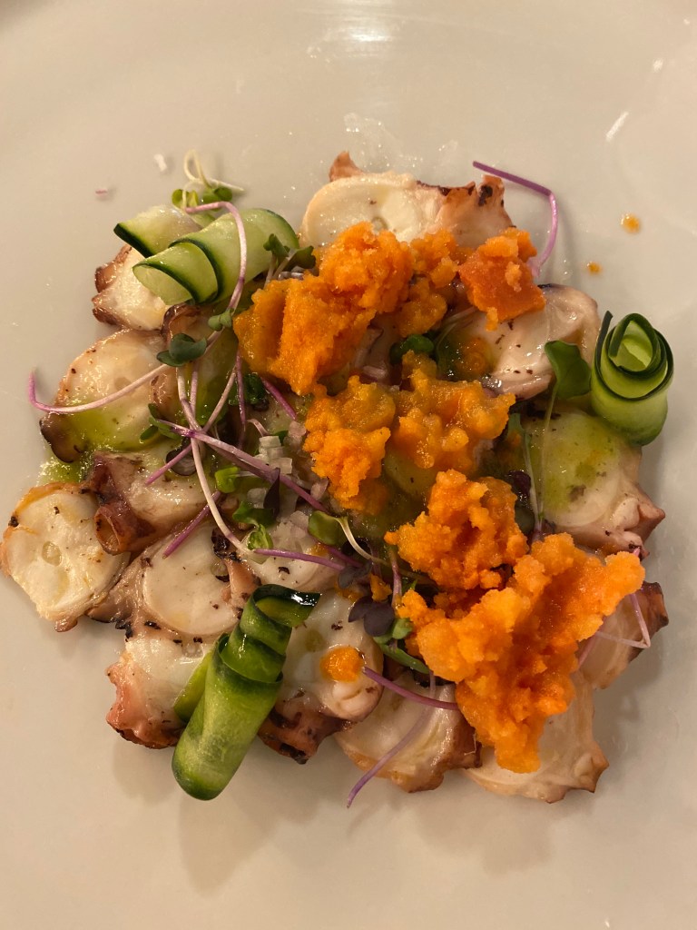 I started with a duo of appetizers (and forgot to take a photo). It consisted of charred octopus and a spiced falafel. The falafel was served with a mint-pistachio pesto and some pickled vegetables. Both were really good!