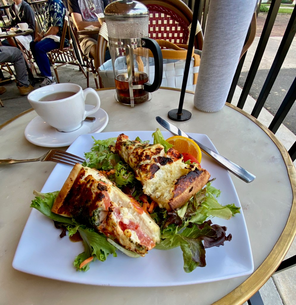 After working around the house this morning I decided to treat myself to breakfast after my trip to the farmers market. I was actually wishing I had a jacket as it was a chilly 72 F (22 C) outside!