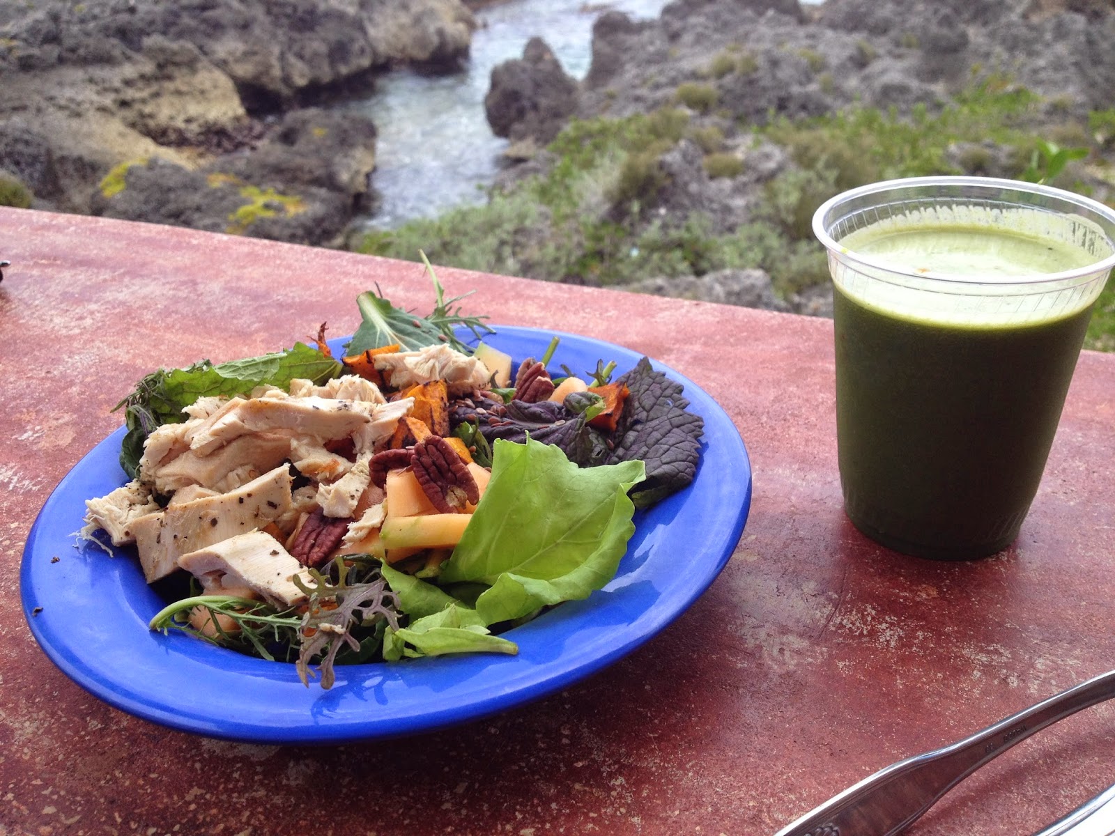 Richard ordered the Sweet Chicken salad- it came with sweet pecans, roasted pumpkin, local fruit and flax seeds.