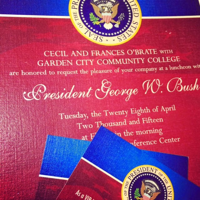 Today was a special lunch as we got to enjoy a conversation with former President Bush. The day started off early with a 5 am start for my parents. They flew down to a small airport outside Dallas and the plane was inspected and declared ok for President Bush to get onto the plane.