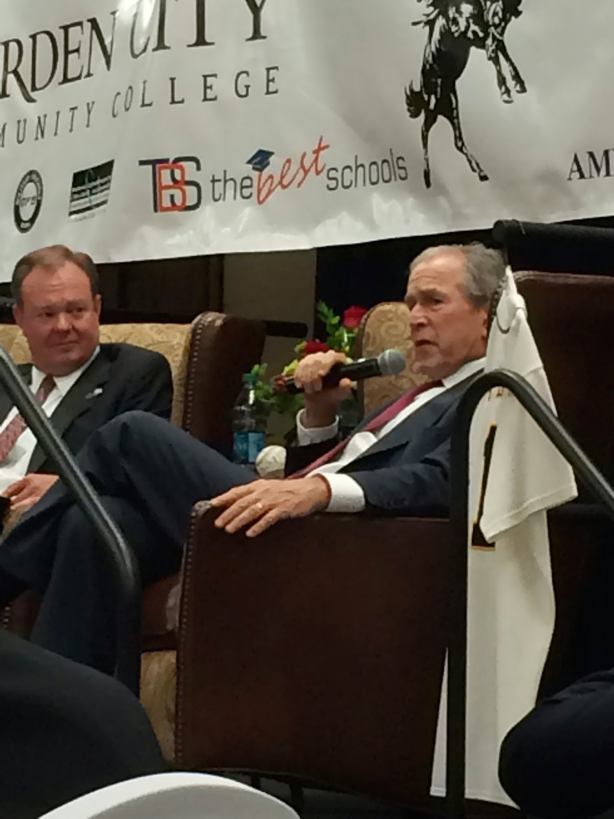 After lunch there was a Q and A with President Bush. There was a wide range of questions ranging from his family, living in the White House, his painting, Iraq, Russia and much more…